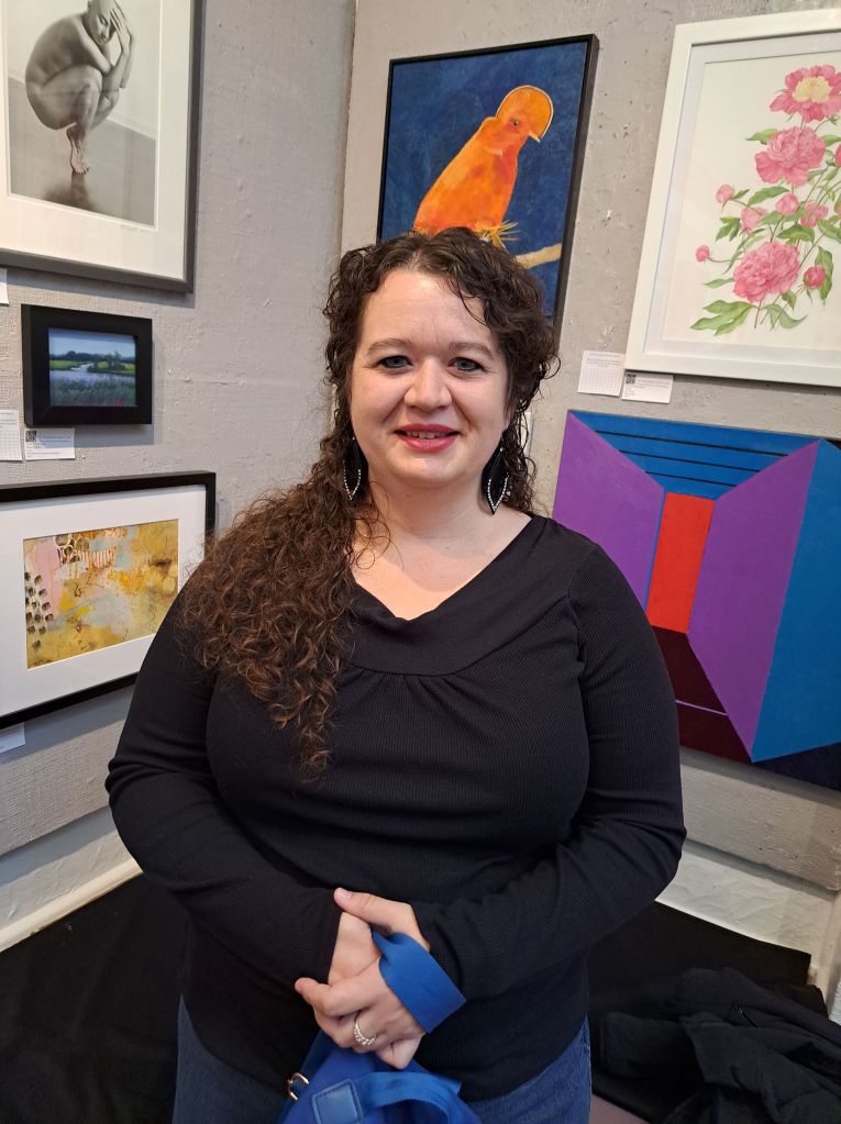 My bird, “Guianan Cock of the Rock” was accepted into a juried show at the Philadelphia Sketch Club, America’s oldest artist club. The work was up for the month of December. My piece is partially blocked by my head in this photo which I asked a stranger to take of me. He was very nice, but it looks like the bird is hatching out of my brain, which I guess it sort of did, since that’s where artistic inspiration arises.